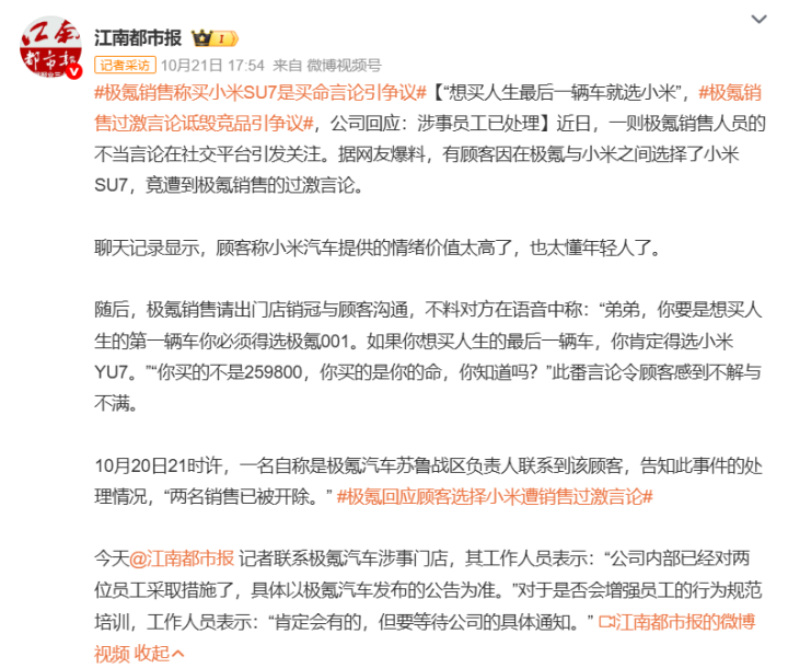 最后,关于“极氪销售不当言论”事件,目前媒体消息显示,极氪方面已经进行妥善处理,希望大家理性看待。本文涉及到的相关信息,来源于权威媒体消息,仅供参考,具体以极氪官方信息为准。